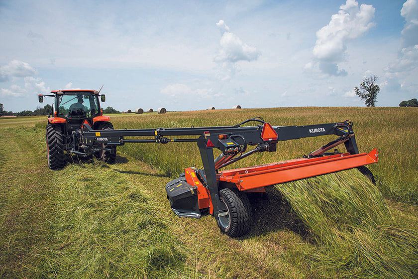 Exceptional conditioning capability meets precision mowing in the Kubota DMC8547T! The Kubota Disc Mower Conditioner adapts to your movements with its ground following ability, letting you cover more ground and make sure you’re taking care of your land. Independent active suspension keeps things stable, while ten discs and 30 blades provide you with a working width of 15’ 6” and a clean cut each time. No matter the terrain, no matter the acreage, the Kubota DMC8547T has got your back!
