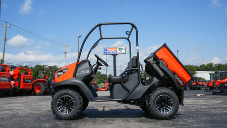Compact, nimble, and dependable, the RTV520D-AS is built to handle both home projects and job site tasks with ease. Its bold UV Orange finish, paired with rugged ATV tires and durable alloy wheels, adds both style and capability. Designed for simple operation and everyday comfort, it’s perfect for new drivers while still tough enough to meet the demands of serious work.