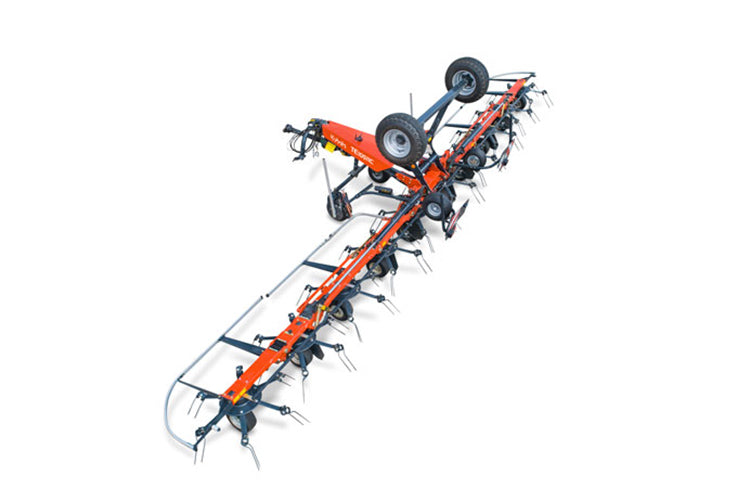 The premier tedder experience is easily found in the Kubota TE12513C and its 43'11” working width makes haymaking efficient! The tedder’s Super-C tines spread the crop in an inverted fashion, meaning the lower crop is placed on top, providing you with an even dry down. Kubota’s commitment to durability is showcased in the tedder’s rotor gearbox and chassis, and with a transport width of just 9'8” you’ll swear the TE12513C is your new best friend..