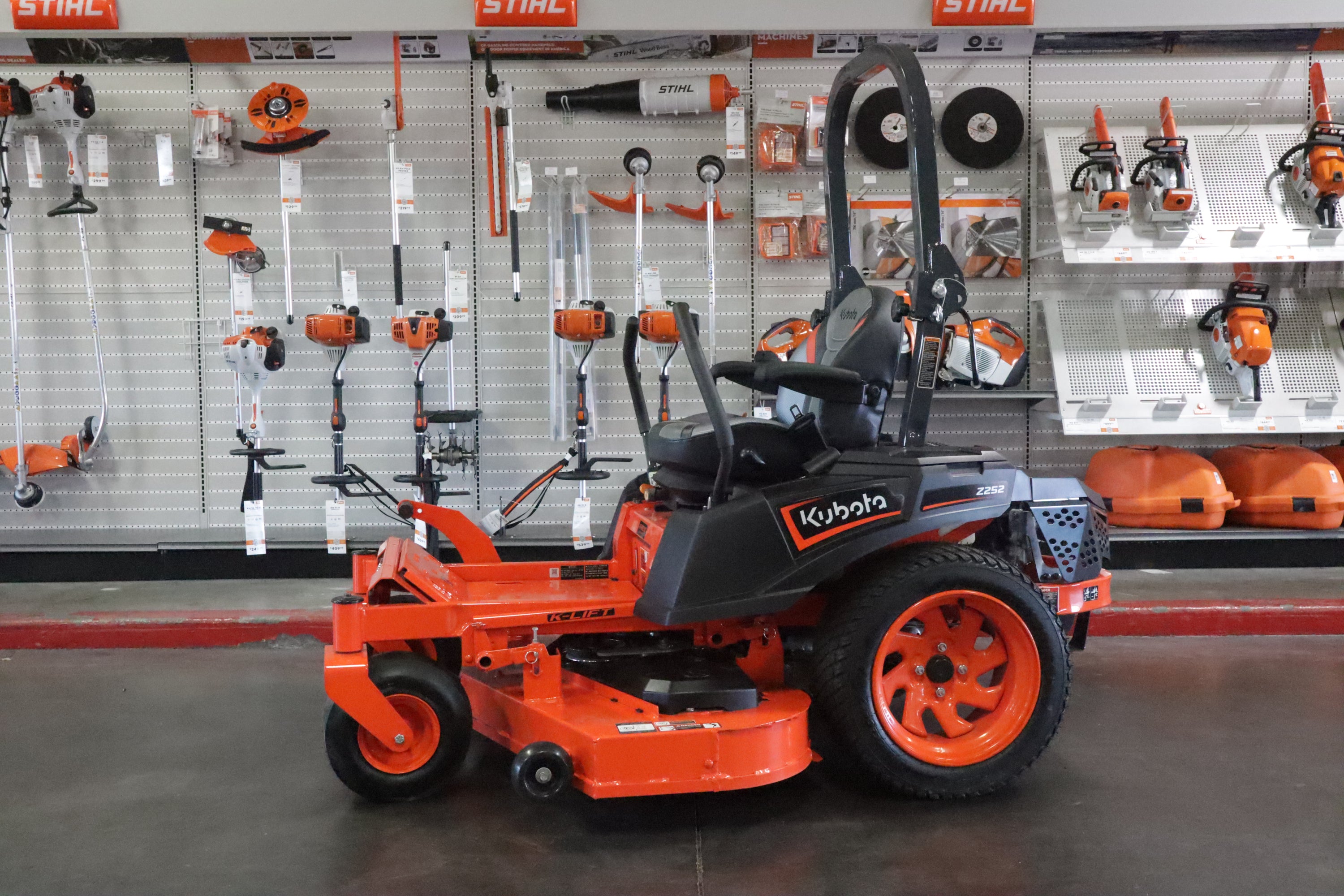 Sitting on a 10-gauge steel welded, mower deck and featuring Ultrascaper Rear Z tires on a redesigned wheel, the Kubota Z252KH-54 gives you the quality and longevity you’re searching for in a zero turn! Sporting a Kohler engine with 25 horsepower and Hydro-Gear Transmission, you’ll take on straights and curves with confidence. A newly designed HST lever, and thick rubber cushions under the step plate reduces vibration on rougher lawns. Push to start gets you going fast, with one handed operation of the choke and engine start switch. The Z252KH-54 gives you nothing short of the ultimate zero turn experience.
